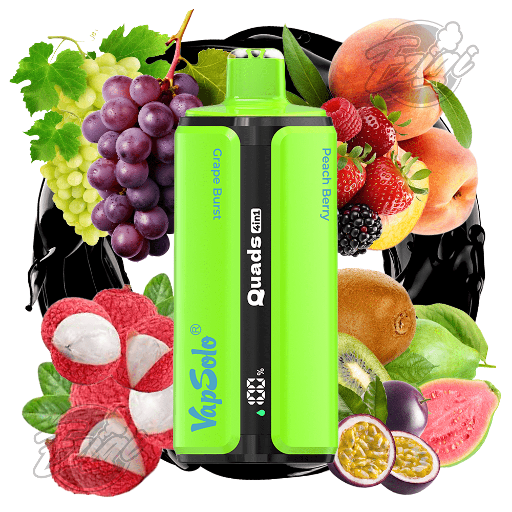 Vegyes bogyós robbanás, cseresznye‑citrom frissesség, eper–kiwi trópusi élvezet és epres–dinnyés rágógumi varázs – édes, friss és játékosan pörgős ízélmény minden slukkban.